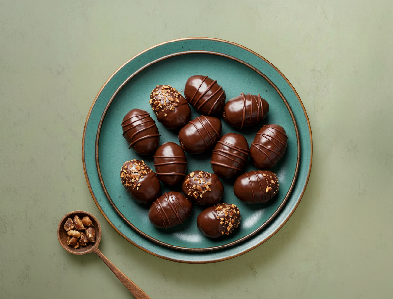 تمر فاخر مغطى بطبقة من الشوكولاتة اللذيذة، مناسب للضيافة والهدايا.